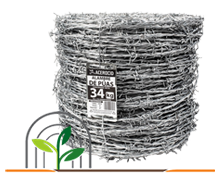 Alambre de Púas de calidad comercial en rollo de 34 kg. Púa entrelazada dentro de los alambres torcidos en la misma dirección. Resistencia a la ruptura mínima de 431 kgf.